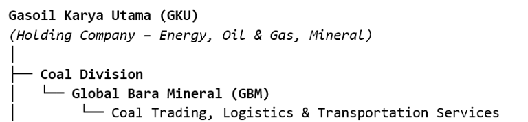 Global Bara Mineral (GBM) is a subsidiary of Gasoil Karya Utama (GKU), a holding company operating in the energy, oil & gas, and mineral sectors.